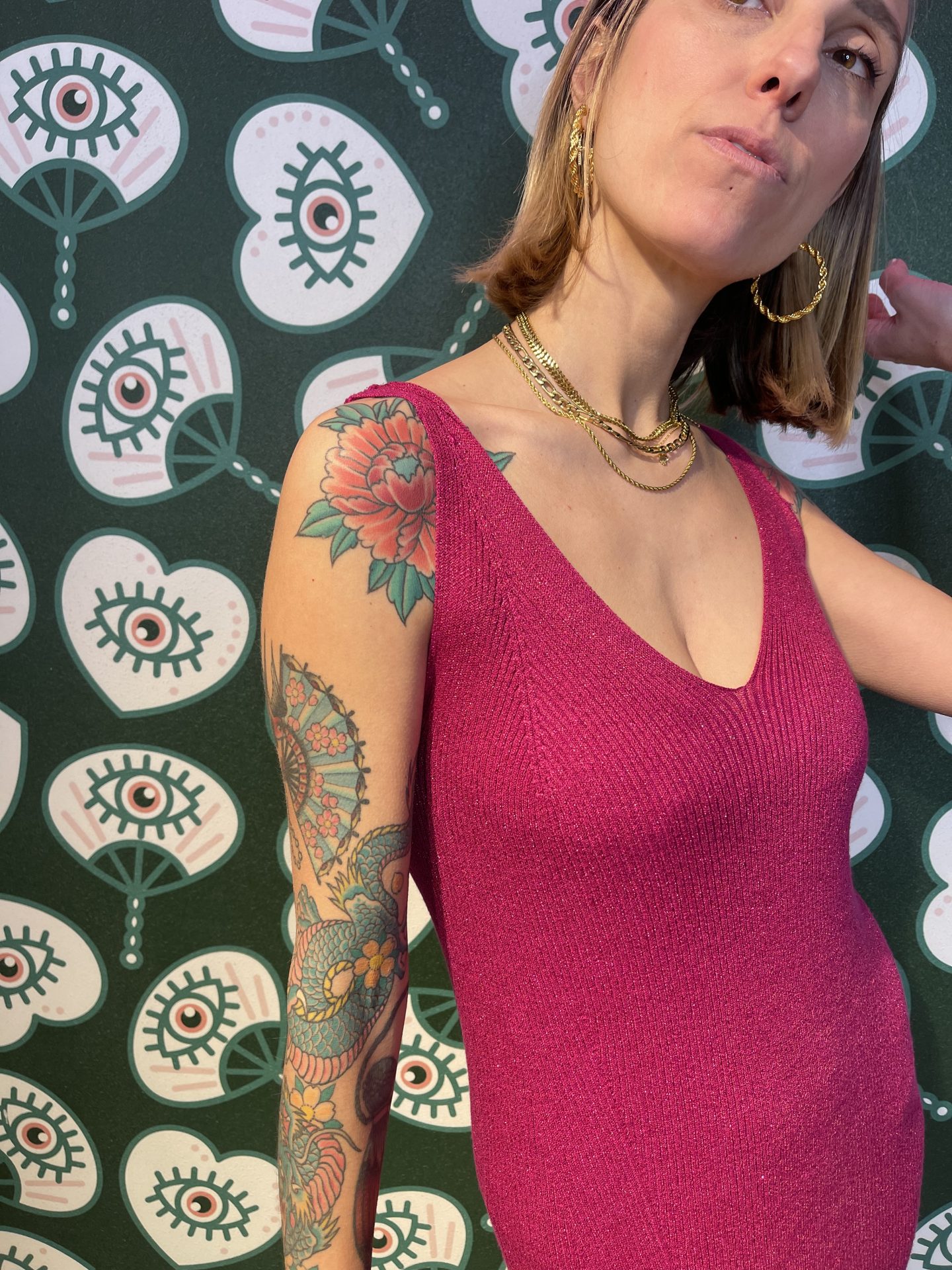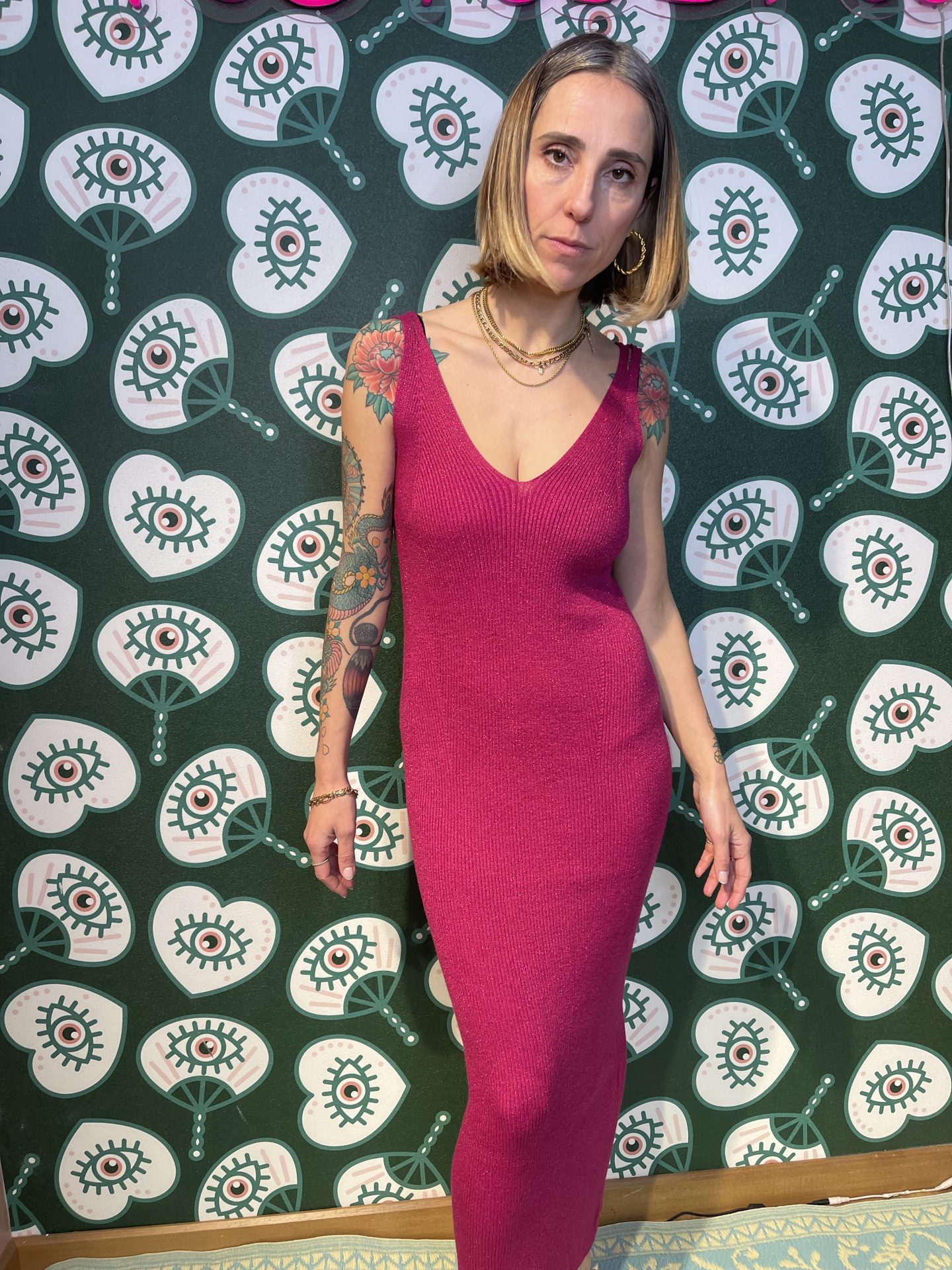 Abito fuxia lurex costine