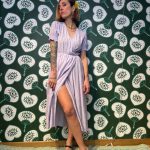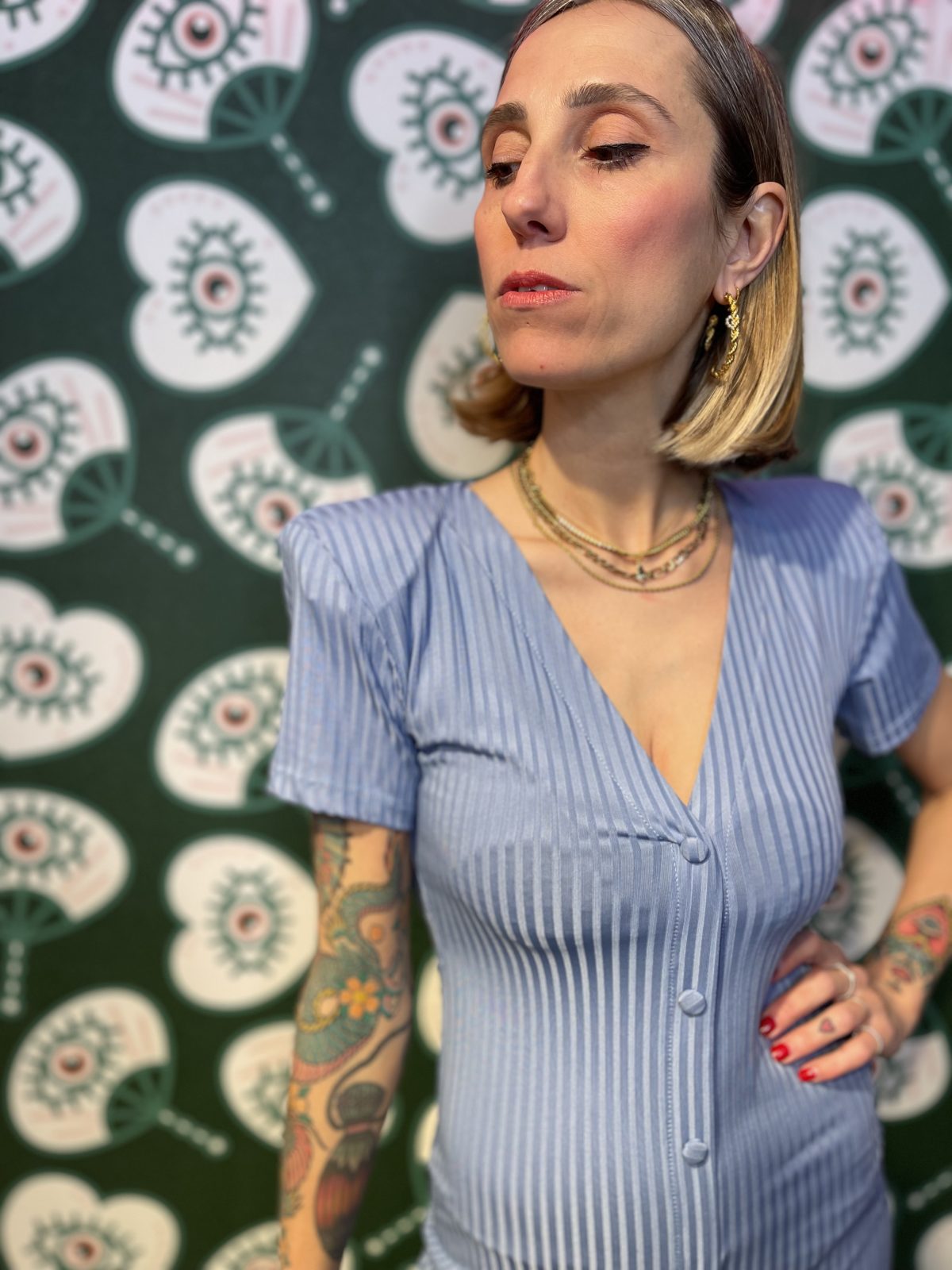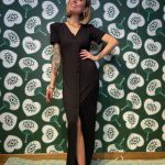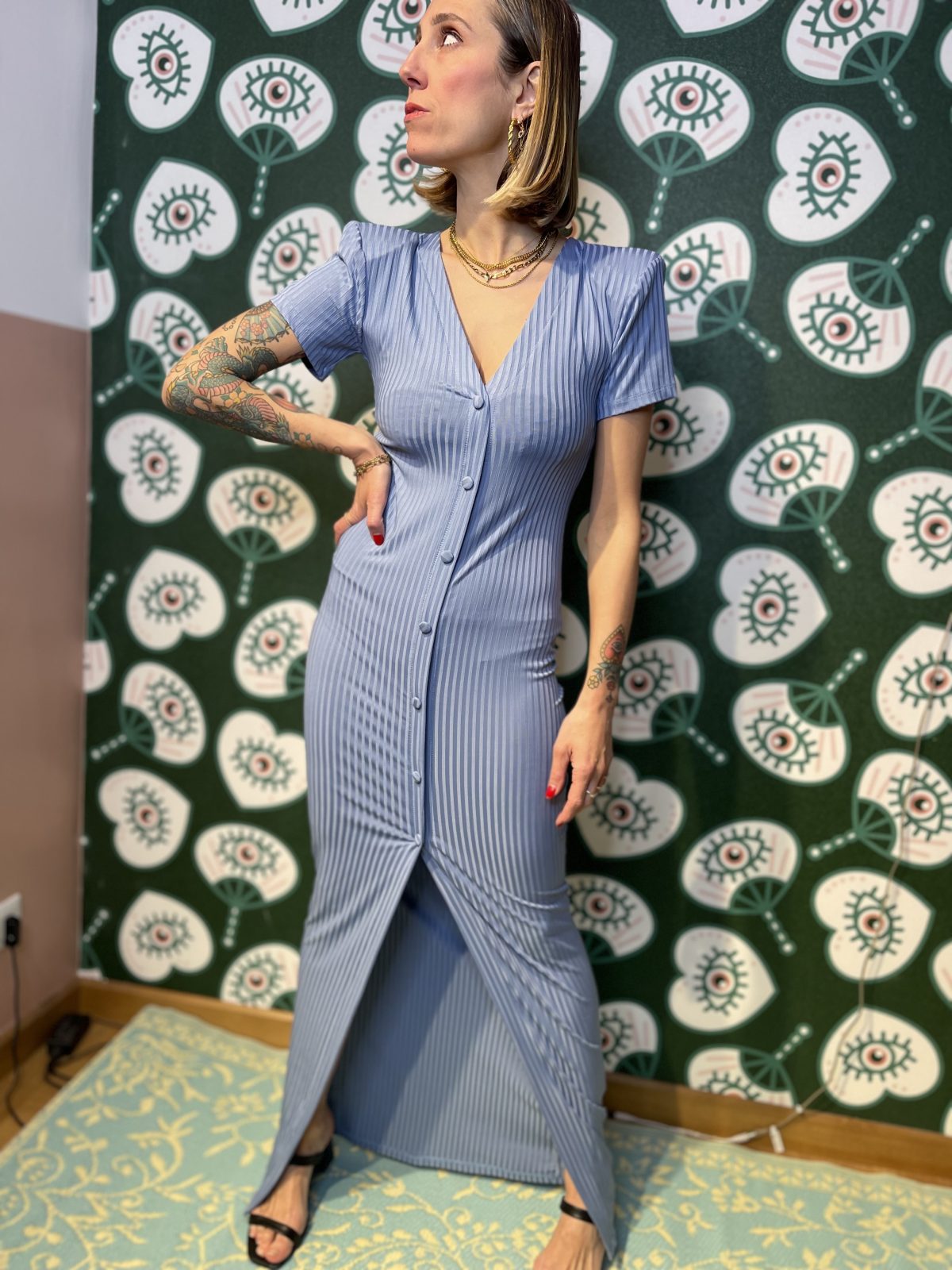 Abito lungo in lycra a costine, dettagli spalline e bottoni con spacco sul davanti