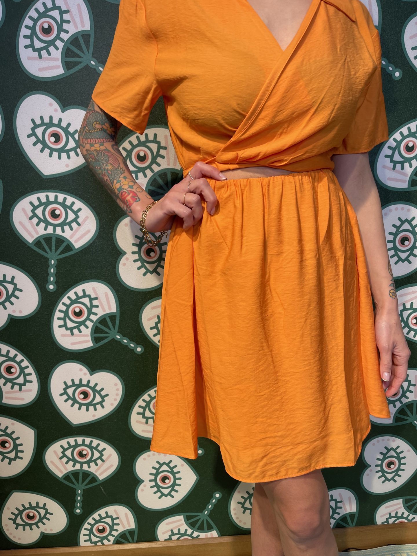 Abito in viscosa super fluido con gonna a campana e taglio cut sul davanti