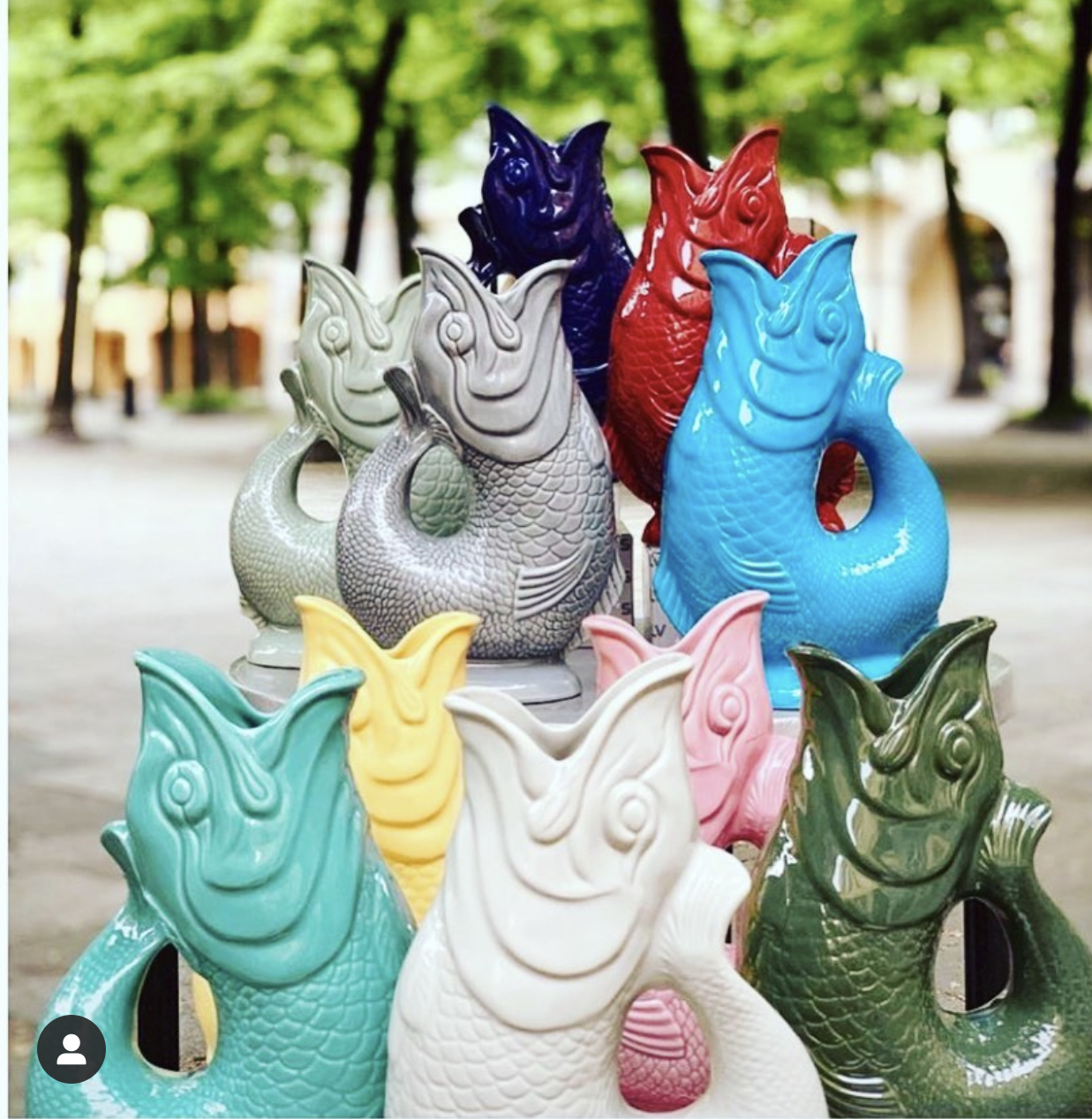 Glugle,è una brocca iconica, prodotta in Inghilterra dal 1870 il nome “glug glug” deriva dal suono dell’acqua mentre viene versata.