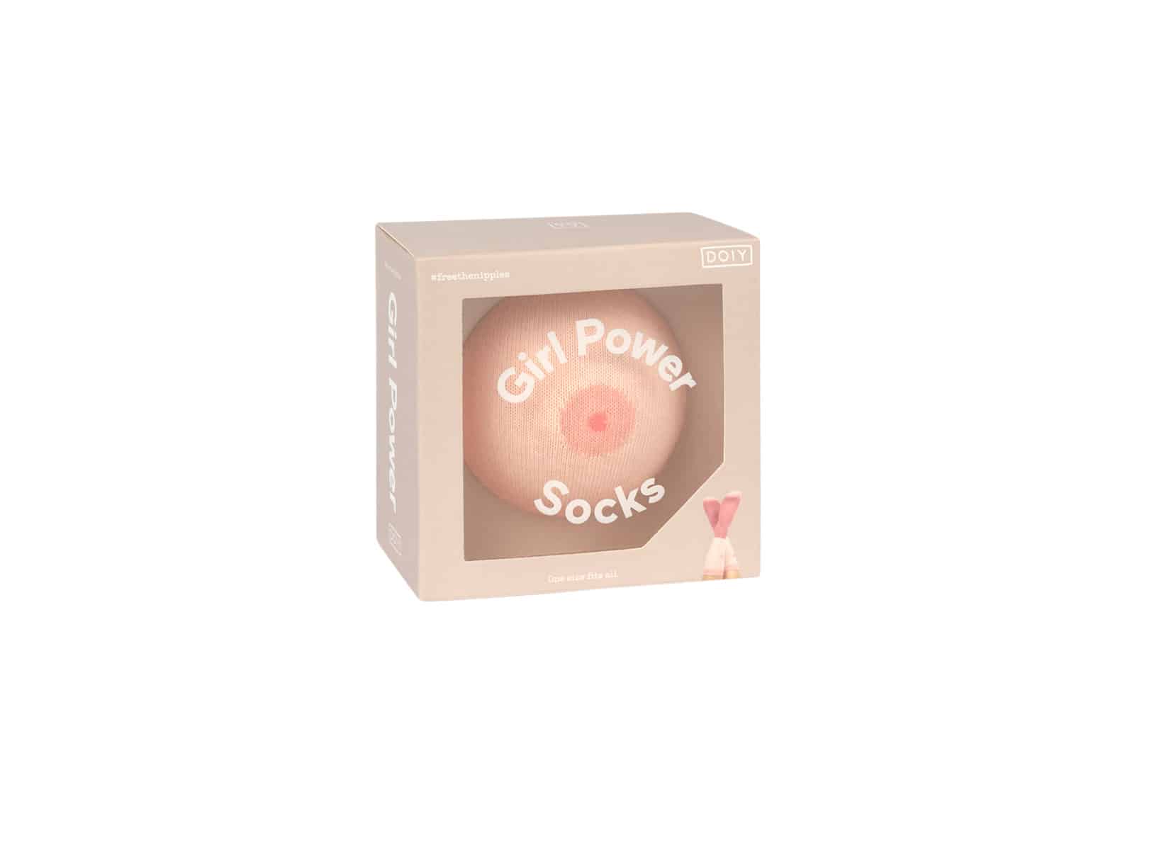 Simpatici calzini costumizzati a tema GIRL POWER con packaging “tetta”