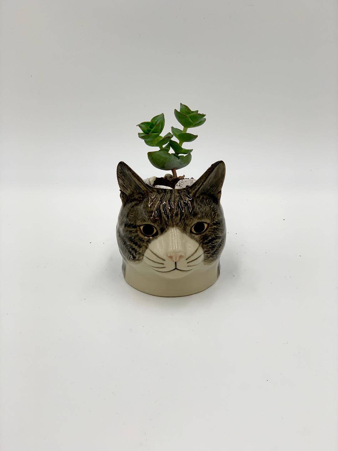 Gatto grigio porta uovo/pianta ceramica inglese dipinto a mano