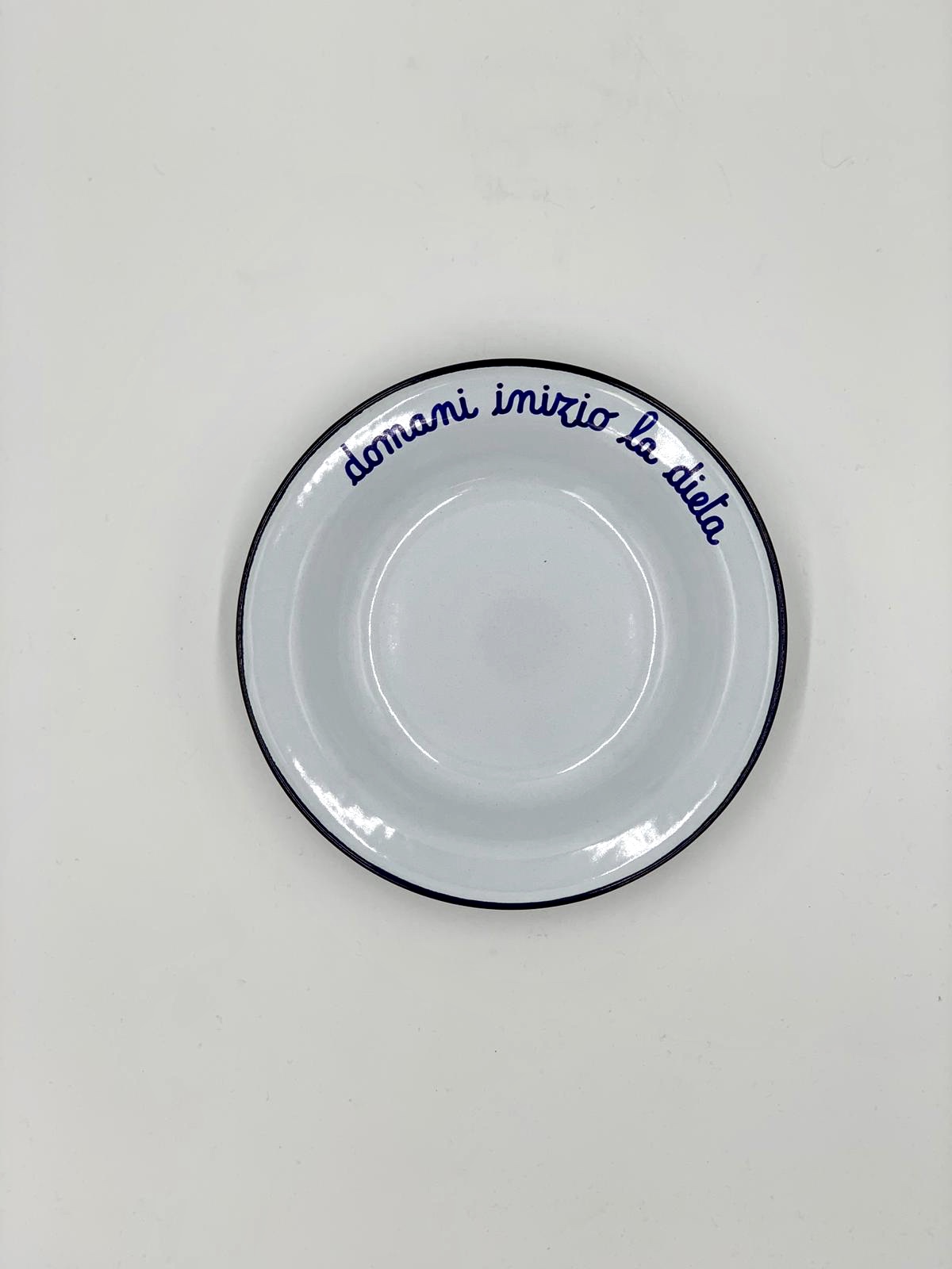Piatto in latta smaltata con frase personalizzata