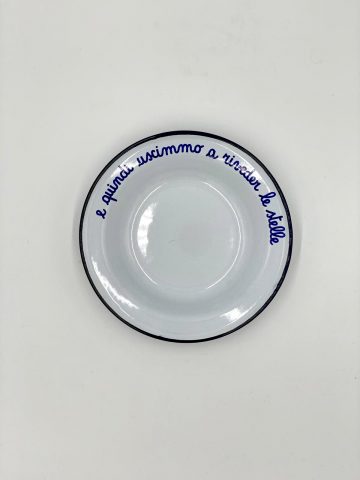 Piatto cupo in latta smaltata con frase personalizzata