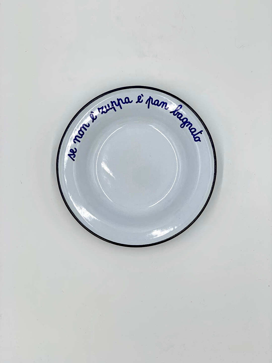 Piatto cupo in latta smaltato con frase personalizzata