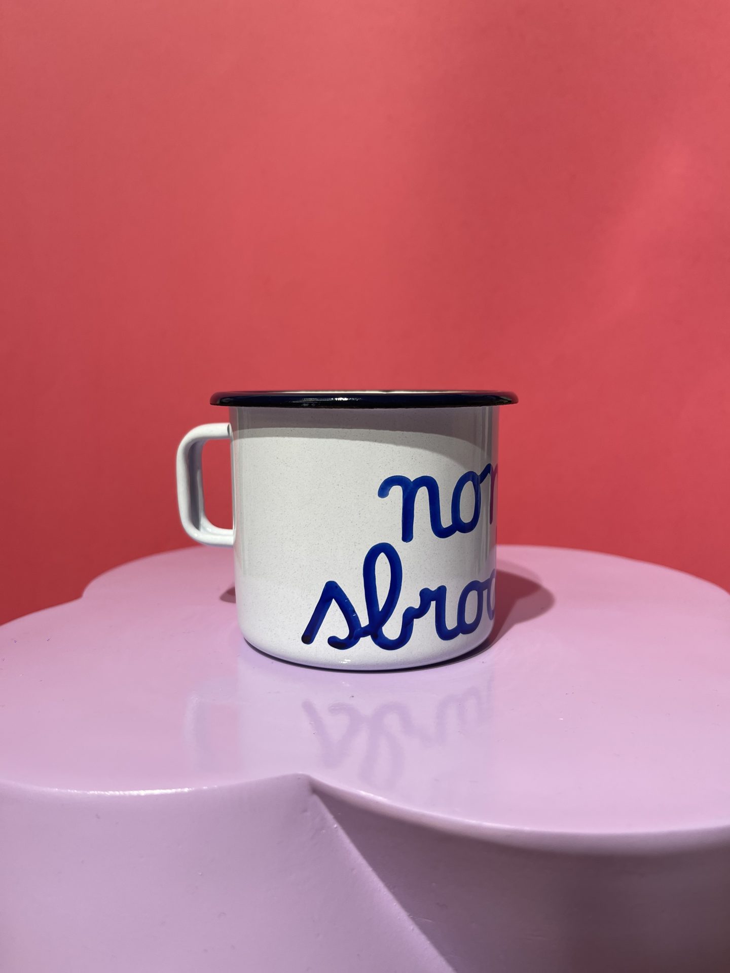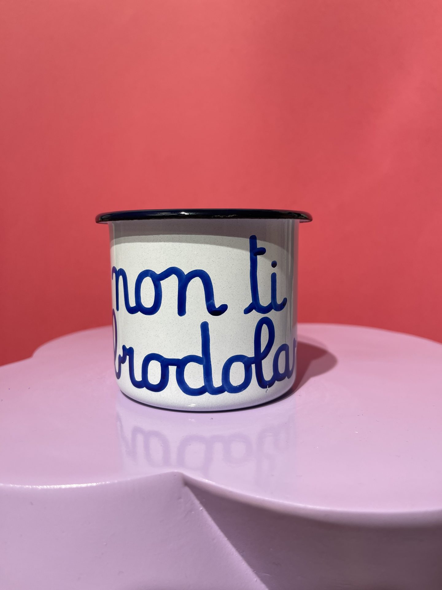 Tazze in latta personalizzate con frasi.